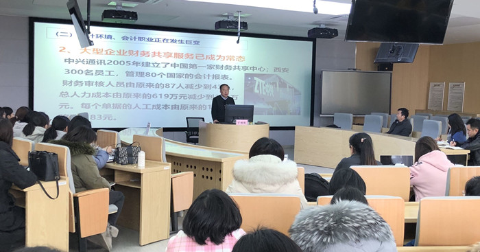 12月23日,财会金融学院邀请安徽商贸职业技术学院会计学院院长丁增稳来我院举办题为《会计专业建设暨技能竞赛经验分享》的讲座。