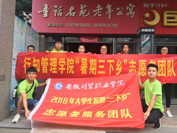 7月3日,行知管理学院暑期“三下乡”志愿者团队以“关爱老人,奉献社会”为口号,10位团学干部和中特会成员在团总支书记左艳琼和学生管理秘书蔡玉菊两位老师的带领下来到了合肥市童话名苑老年中心。此次活动为期8天,志愿者们每天配合童话名苑老年中心的工作人员完成当天的工作任务,陪老人聊天、读报,为老人们仔细阅读党的十九大报告、解读党的十九大精神,陪伴爷爷奶奶们做游戏,帮助老年中心工作人员完成清洁等工作。