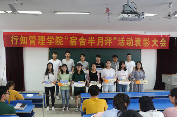 为建立学生宿舍环境卫生长效机制, 创造整洁、文明、舒适、优美、规范的宿舍卫生环境,5月30日,行知管理学院在5102教室举办了第三期宿舍半月评表彰大会,本次会议由行知管理学院团总支书记左艳琼主持,党总支副书记唐学华,全体专职辅导员老师和部分兼职辅导员老师,以及各班级班长、劳动生活委员和全体寝室长参加了会议。