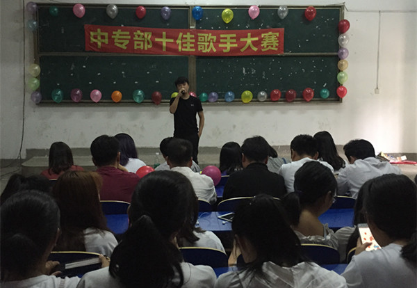 5月30日中午,中专部在E1005教室举办十佳歌手大赛,2016、2017级全体学生以及2015级学生干部齐聚于此观摩了此次大赛。中专部副主任徐道根、杨声、廖步岩以及各班级辅导员作为嘉宾评委共同出席了本次活动。