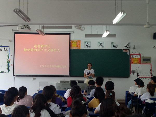5月,大位会计学院90名入党积极分子参加了学校组织的第45期入党积极分子培训班,本次培训班班主任由总支组织委员沈丽萍老师担任,大位90名入党积极分子开展了一系列的志愿者实践及主题交流分享等活动。