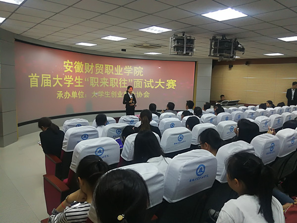 近日,由学校团委、招生就业处主办,大学生创业就业协会承办的首届“职来职往”面试大赛在3D实训室举行,大赛邀请了学校监察审计处副处长朱玫琳、团委副书记王学峰、招生就业处副处长许勇、大位会计学院党总支书记张少兵、大位会计学院齐杰老师担任评委。