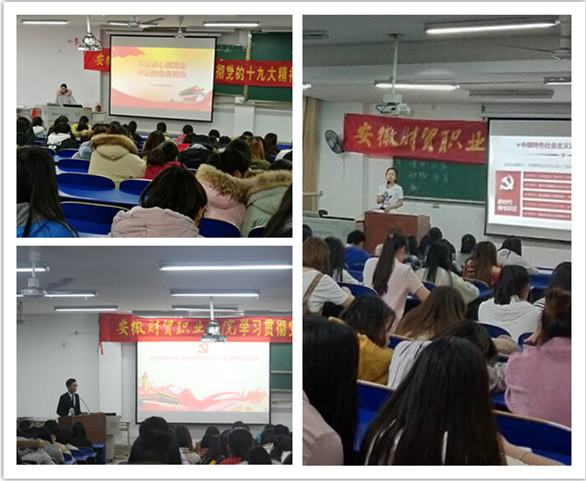 为深入贯彻宣传党的十九大精神,大位会计学院选派了刘凯、周安琪、马兰燕三名优秀辅导员代表在学校开展了三场党的十九大精神学习宣讲报告会,刘凯老师以《牢记时代使命 建设美丽中国 做有为青年大学生》为主题,从把握新时代找准新定位、进入新时代明确新担当、踏入新征程、践行新担当、青年同志如何去做四个方面对党的十九大报告做了部分阐述,也对聆听的广大青年同学提出了希望和建议;周安琪老师以《不忘初心跟党走,牢记使命勇担当》为主题,从习近平总书记提出的“青年兴则国家兴,青年强则国家强”入题,勉励各位学子要响应“青年一代有理想、有本领、有担当,国家就有前途,民族就有希望”的倡议,鼓励青年学子牢记自己的使命和担当;马兰燕老师则以《乘时代之风,扬青春之帆》为主题,从中国特色社会主义新时代、高职学生新时代的挑战与机遇和给新时代大学生的几点建议三个方面逐层展开,勉励学生树立与时代主题同心同向的理想信念,修身立德、志存高远,希望同学们在激情奋斗中绽放青春光芒、健康成长进步。