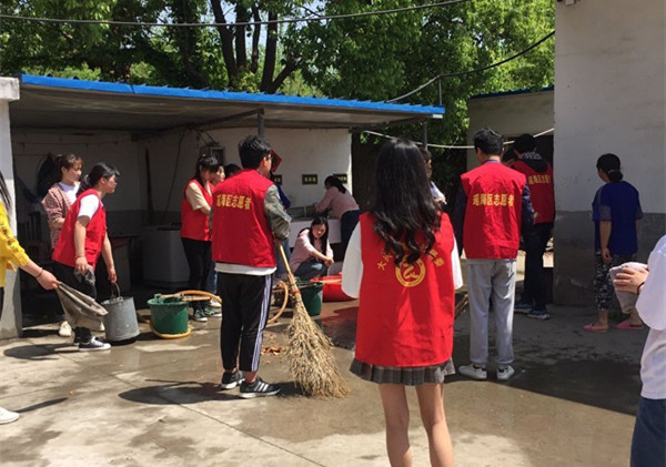 4月18日下午,中专部学生志愿者团队在学生管理秘书石冰的带领下走进大兴镇敬老院开展“献爱心 情暖养老院”的志愿服务活动。志愿者们仔细询问老人们日常的饮食和身体状况,与老人们聊家常,还帮助打扫卫生,有条不紊的清扫地面垃圾、清理窗户、楼梯扶手的灰尘,志愿者们的关怀和温暖让老人们的脸上流露出幸福、开心的笑容。
