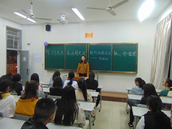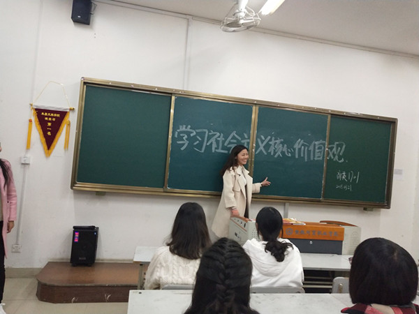 在3月份的宣传月期间,朱熹文旅学院各班纷纷以口语训练、时政学习、主题团课、主题班会等积极宣传社会主义核心价值观。在口语训练中各班级同学阐明了自己对社会主义核心价值观24字的理解,并结合中国特色社会主义新时代阐述了践行社会主义核心价值观的实践意义。在时政学习及主题团课上,各班团支部结合党的十九大及两会的热点话题,就“中国特色社会主义新时代如何做一名合格的共青团员”、“当代大学生如何践行社会主义核心价值观”等话题,积极通过开展讨论、交流、学习等活动。在主题班会上,辅导员精心组织设计引导,学生纷纷以互动讨论的方式参与其中。有的学生说:“国是千万家,有国才有家,爱国是我们每一个国人永恒的主题”,有的说“天下兴亡,匹夫有责”,有的是说“诚信乃立身之本”,有的说“社会主义依法治国,同时更需要以德治国”、有的同学说“作为当代大学生,最重要的当然是在学业上的努力,学好专业知识,为以后的就业作积极的准备,规划好自己的人生,这也是一种爱国”。