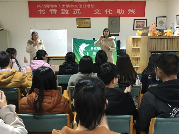 同时,广大同学还结合雷锋活动月活动,广泛参加社会公益志愿活动,积极将校内宣传进一步拓展为校外实践,自觉将社会主义核心价值观付诸实际行动之中。3月17日,朱熹文旅学院共青团志愿者加入“合肥市随缘服务队”,与社会爱心人士共同开展“爱与陪伴一堂课”活动,帮扶孤寡老人清扫,敬老院卫生,帮助老人整理内务,宣传爱心精神,传递正能量。3月24日,朱熹文旅学院共青团志愿者赴安徽省图书馆安徽海豚听障人士服务中心参加义工,与该中心一道举办“书香致远,文化助残”第72期残障人士读书文化日活动。
