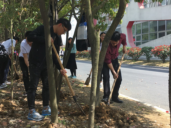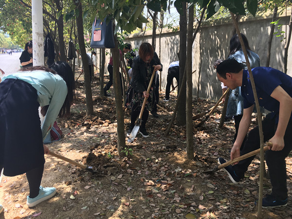 树木吐绿、小草发青,支部林焕发出一副成长复苏的画面。党员老师和同学们用铁锹仔细为树木松土,让根部更多吸收春日的氧气,在春天阳光雨露的滋润下,成长地更快。