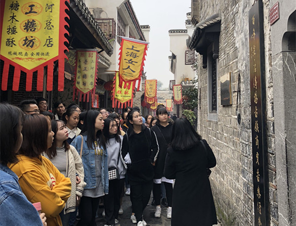 在三河古镇景区,景区管委会导游部经理李曼婷向同学们介绍了景区概况,安排同学们实地考察了景区游览线路,李曼婷向同学们介绍了三河古镇创建国家5A级景区的主要过程,强调了主要景点的讲解要点和导游技巧。随后,同学们分组开展实训演练,老师进行现场指导,及时纠正问题,有效地提高了实训效果。
