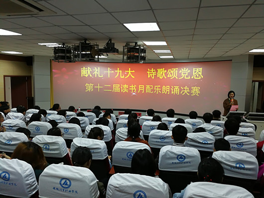 11月21日中午,第十二届读书月“献礼十九大 诗歌颂党恩”配乐朗诵比赛在3D实训室举行。科研处副处长王海龙、监察审计处副处长朱玫林、学生处副处长胡宏萱、图书信息中心副主任丁联、现代教育技术中心陶训初老师应邀担任比赛评委。