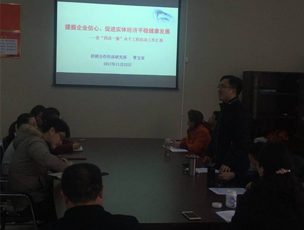 会上, 唐学华传达了十九大对高等教育的新要求。曹宝亚按照院党总支的安排,汇报了他参加“四送一服”双千工程活动的相关工作内容和个人心得体会,表示通过“四送一服”双千工程活动积累了教科研第一手资料、专业建设资料以及社会服务经验。他还结合工作岗位实际,在专业建设、学生教育、个人发展等方面提出了相关建议和意见。