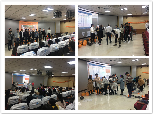 10月31日晚,国际交流中心在3D实训室举办万圣节文化体验活动。外教夏(Shahboz)和阿齐兹(Azizi)带领2017级中外合作专业的学生们一起体验了西方文化中的万圣节。