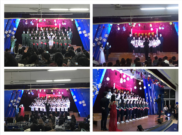 雪岩贸易学院17个新生班级利用课余时间精心准备,以别具一格的表演方式,各具特色的服装打扮,昂扬向上的精神面貌展现出雪岩贸易学院新生朝气蓬勃的气息。同学们精彩的演出频频引得观众席上掌声雷动。自选曲目《歌唱祖国》、《国家》、《义勇军进行曲》、《保卫黄河》、《精忠报国》等歌曲,唤起了观众的历史记忆,歌颂出了中华民族自强不息的伟大精神。