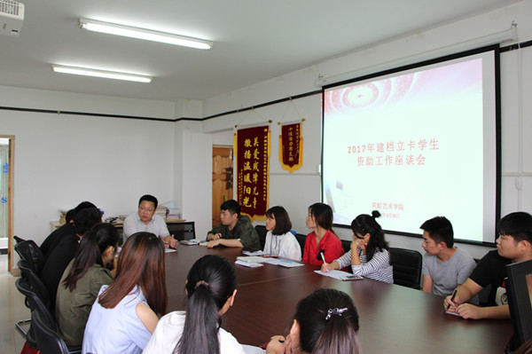 9月20日下午,宾虹艺术学院召开2017年建档立卡学生资助工作座谈会。宾虹艺术学院党总支副书记张伟、学生秘书王思、团总支干事徐辉与21名建档立卡受国家资助的学生们进行座谈。