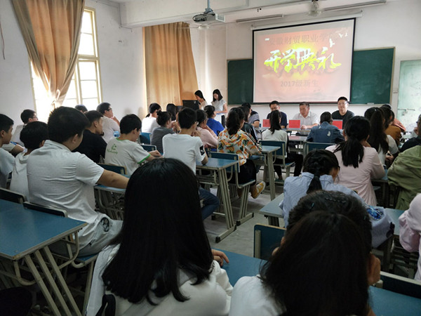 9月15日,中专部举行2017级新生开学典礼。中专部副主任徐道根、杨声,教学秘书李松、综合管理秘书孟藏珠及全体新生悉数到场参加典礼。