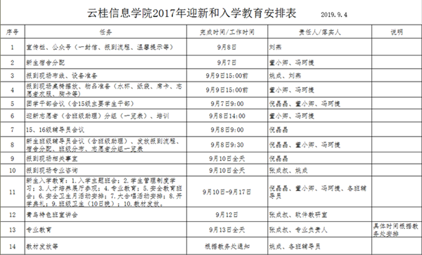 新学期,新起点,新征程。云桂信息学院开学前的准备工作已基本准备就绪,全体师生同心同德,齐心协力迎接新生的到来,以崭新的面貌迎接新学期的工作。