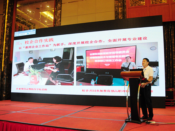 苏卫东分析了我国冷链物流发展现状,并分析了冷链物流人才培养现状与建议,重点分享了皇冠登录入口和安徽和合冷链食品股份有限公司在冷链物流技术与管理专业上的校企合作实践。苏卫东的演讲,从企业角度出发,“干货”不断,受到了与会老师的一致高度认可。