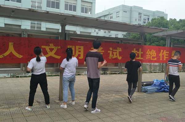 诚信考试签名活动。6月12日,云桂信息学院在食堂门口开展了考试诚信签名活动,制作了考风考纪警示横条幅。在此次诚信考试签名活动中,发挥学生党员和学生干部的带头作用,号召引导全院同学认真复习备考,自觉遵守考试纪律。