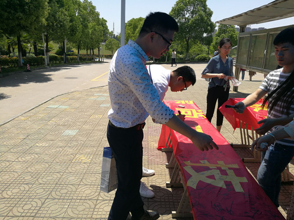 2017年5月10日中午,大位会计学院在食堂东门举办2017年职业教育活动周横幅签名活动。