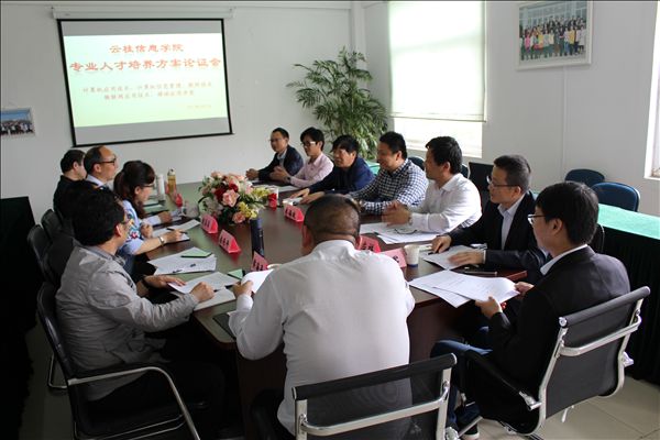 云桂信息学院副张成叔主持会议,介绍了计算机应用技术、计算机信息管理、软件技术、物联网应用技术、移动应用开发等5个专业的人才培养现状。各专业教研室重点就2017年人才培养方案关于课程体系架构、技能大赛支撑等情况向专家请教。