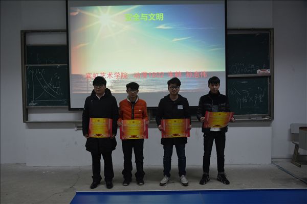 3月13日晚,宾虹艺术学院在5201教室成功举办第六届“与文明同行 与安全相伴”安全知识演讲比赛。团支部及协会负责人担任此次比赛评委,共遴选出7人参加比赛,每人都认真准备了演讲主题的背景音乐伴奏,广告1602班刘志祥同学以自己的亲身经历为例,令现场观众为之唏嘘。 环艺1602班盛奔奔同学的演讲主题《安先生与文先生》以磁性的嗓音和坦然的演讲方式给现场观众以及评委留下了深刻的印象。 三月安全文明月,开展此演讲活动,以普及文明及安全知识,提高大家的安全文明意识。