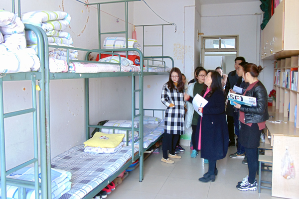 在学院第十个安全文明卫生活动月拉开帷幕之际,2月27日,朱熹文旅学院开展了以“安全文明你我他 宿舍卫生靠大家”为主题的样板宿舍评比活动,该院党总支副书记宋凌云组织全体辅导员参加了评比活动。