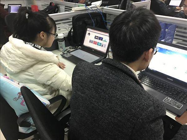 在科大讯飞皆成有限公司,胡杨看望正在企业顶岗实习的学生代表。其中,马志强、何竹靓、李小燕、黄晓红等表现优异,成绩突出,设计开发的作品均已上线,四人已被企业提前录用。胡杨殷切希望同学们珍惜来之不易的实习、就业机会,努力提高自身的实践技能。同学们表示感谢学院提供的良好实习环境,实习中将克服困难,努力工作,不辜负学院和老师们的殷切期望。