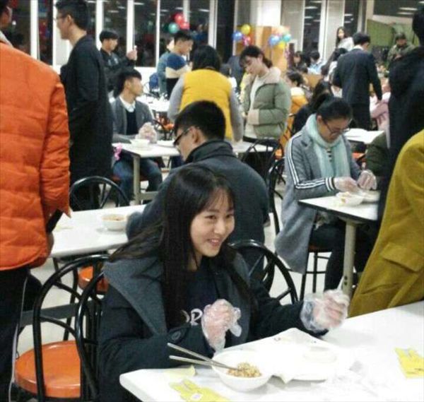 比赛结束后,主办方雪岩贸易学院生活部的同学们主动帮助食堂工作人员清理现场。