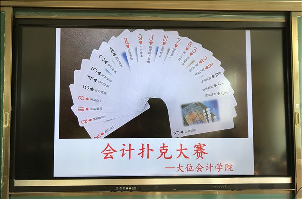 “出牌”加“叙牌”,不仅要按照扑克牌规则,还要加上会计账务处理原则,这样的比赛你参加过吗?近日,大位会计学院第三届会计文化节上,一场与众不同的会计扑克比赛令非会计专业学生望而却步,因为在这场比赛中,不仅要比拼牌技谋略,更重要的是比拼会计账务知识。