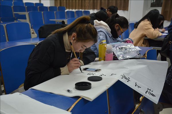 近日,宾虹艺术学院举办首届“兰亭杯”书法比赛,学院200多名书法爱好者聚集5302教室,展示自己的书法功底。