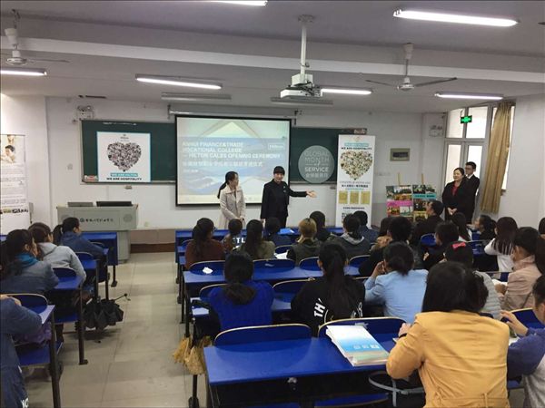 近日,合肥元一希尔顿酒店来校进行订单班宣讲,朱熹文旅学院2015级旅游管理、酒店管理专业的部分学生参加了宣讲会。
