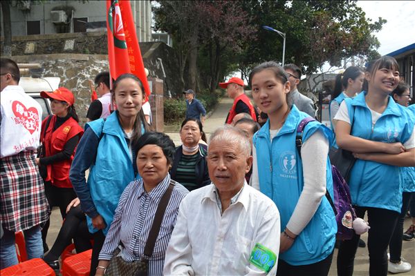 此次大型敬老助残活动由合肥市瑶海区、高新区共同举办,活动主题为“合肥登高处 共奏最强音”。在活动现场大蜀山国家森林公园,宾虹艺术学院的志愿者们协助主办方为参加活动的老人们分发登山物资,并协助腿脚不便、年龄大及坐着轮椅的老人沿着盘山公路登山。