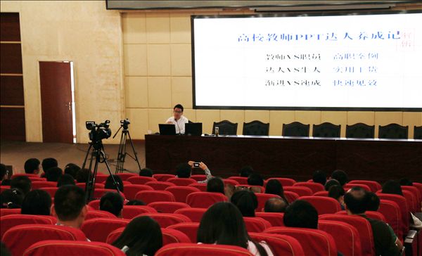 讲座中,胡杨以高职教师业务能力提升为落脚点,从理念、标题、文字、图片、表格、视频、保存、演示九大方面全面讲解了幻灯片制作的方法与技巧,同时列举和展示了大量的高职PPT案例,并将PPT案例分为汇报型、竞赛型、竞聘型、教学型等多种类型,深入系统地分析了高校教师在制作不同类型PPT时应注意的问题和技巧。